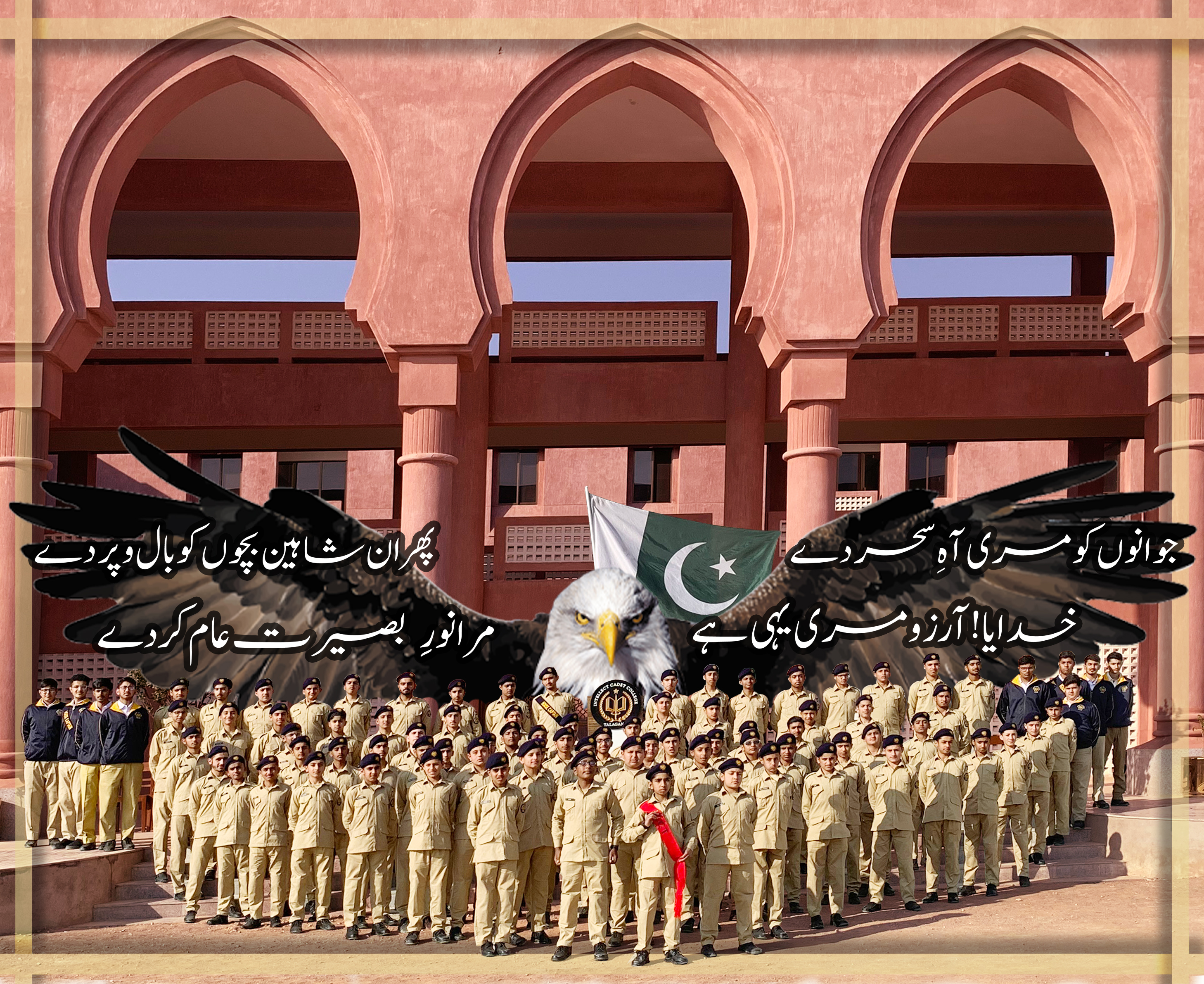 The Intellect Cadet College Talagang (ICCT) is a not-for-profit, independent organization affiliated with the General Headquarters Pakistan Army (GHQ) and the Federal Board of Intermediate and Secondary Education (FBISE) Islamabad. Our educational philosophy is inspired by Allama Muhammad Iqbal’s vision of creating and uplifting ‘Khudi’, of realising one’s true potential, and of channelising this potential for the betterment of Pakistan. At ICCT, we employ a rigorous academic, extra-curricular and personal development routine; through which we aim to bring the best out of every cadet and prepare them for the myriad of challenges ahead.